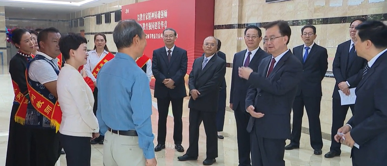 2025年9月9日 学校银龄教师董五辈教授作为全省银龄教师代表受到省委书记王宁,省长王予波等领导的看望和慰问。董五辈教授汇报了在我校开展的国际化课程建设以及建立的“教师-学生-AI人工智能体三元互作”教学模式,这种三元互作模式可以突破教师和课程的瓶颈,能充分利用各种教学资源,显著提高教学效果。为了便于学生更好学习理解,董五辈教授把重要知识点做成了小视频,发表在微信视频号“董五辈2025”供学生学习。